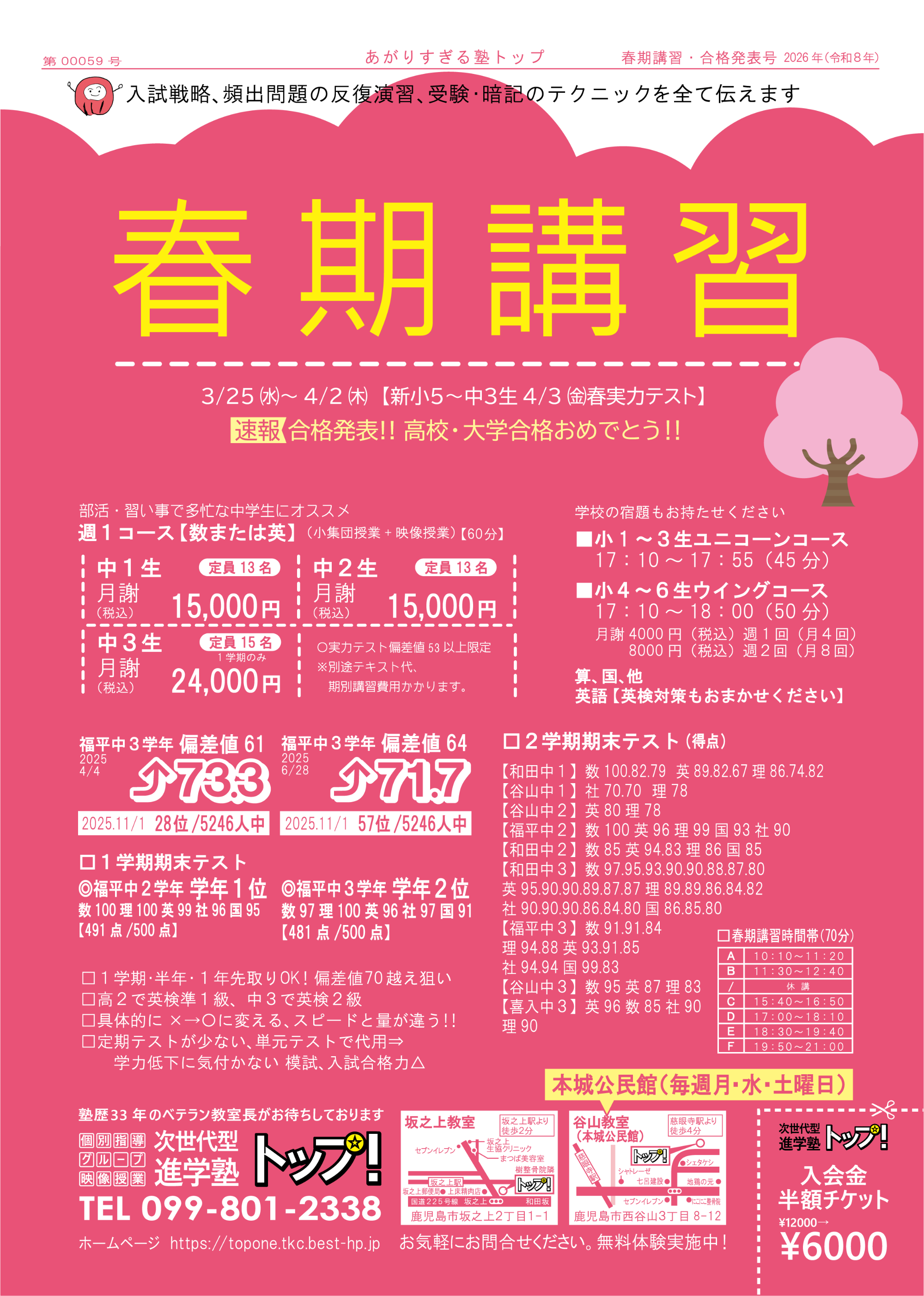 | 所在地 | ●坂之上教室 鹿児島市坂之上2丁目1-1 JR坂之上駅より徒歩2分 樹整骨院隣 ●谷山教室(本城公民館) 鹿児島市西谷山3丁目8-12 JR慈眼寺駅より徒歩4分 |