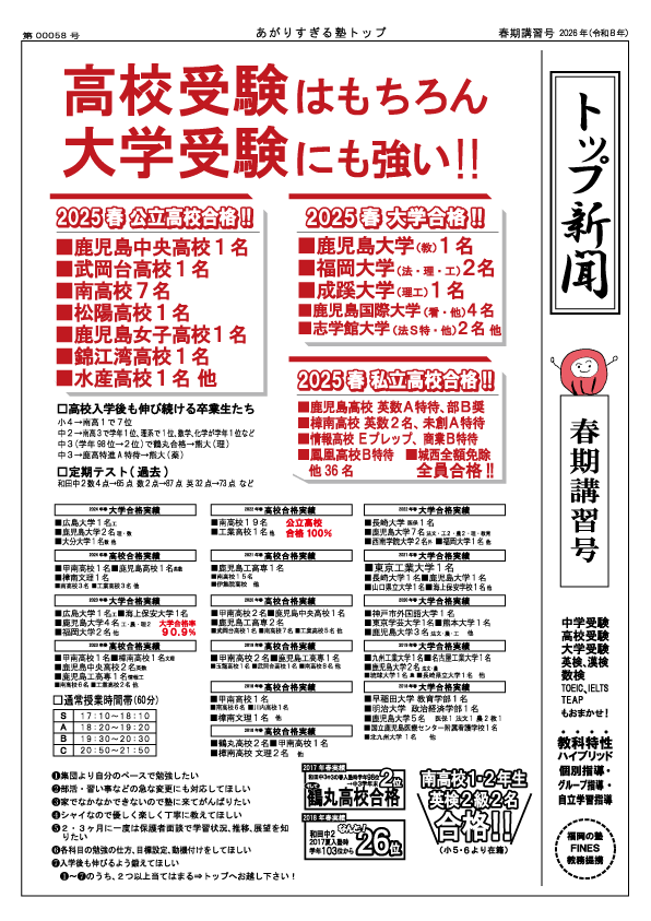 2025年春も多くの塾生が志望校に合格しました。